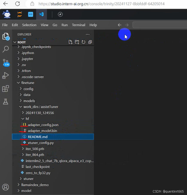 在InternStudio开发机中的已经提供了微调模型,可以直接软链接即可。