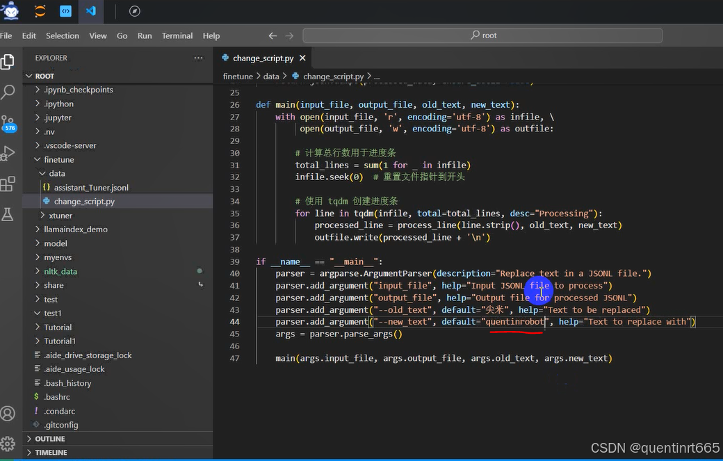 我们写一个脚本生成修改我们需要的微调训练数据,在当前目录下创建一个 change_script.py 文件,内容如下: