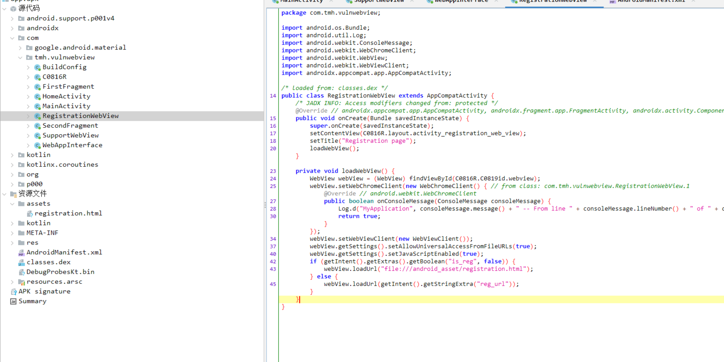 webView.loadUrl(getIntent().getStringExtra("reg_url")); //可以恶意构造url