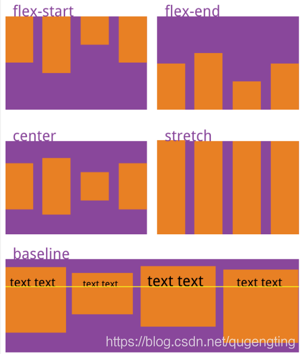 align-items: flex-start | flex-end | center | baseline | stretch;