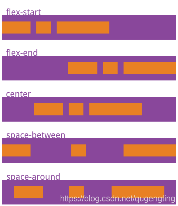 justify-content: flex-start | flex-end | center | space-between | space-around;