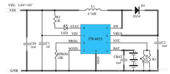 PW4053 输入电压为 5V,内置自适应环路,可智能调节充电电流大小,防止拉垮适配器输出,可匹配所有适配器。