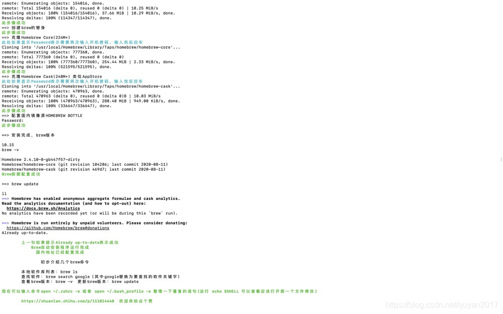 先运行下面命令看是否能出来Homebrew的版本号(结果看倒数3句)