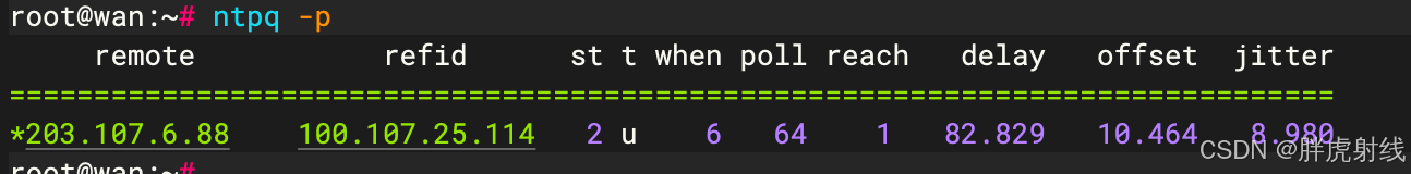 remote //NTP 客户端正在同步的时间服务器的 IP 地址或域名