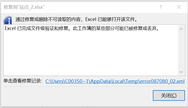 #Excel 已完成文件级验证和修复。此工作簿的某些部分可能已被修复或丢弃。