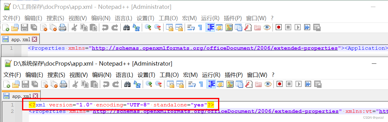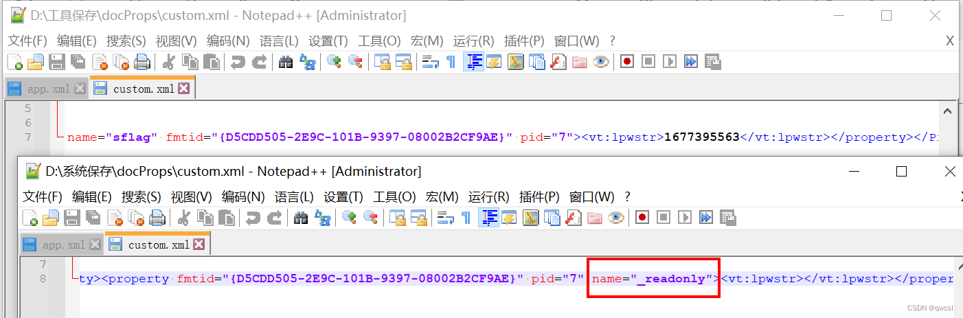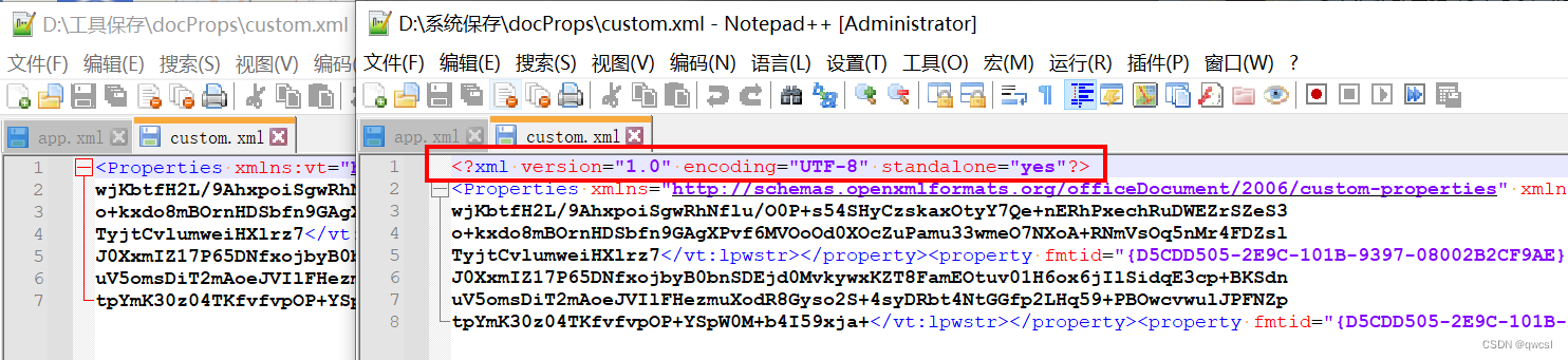 5、docProps/custom.xml,python保存的文件内容同样少太多,属性也要少几个