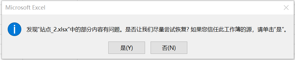 #发现“新建 Microsoft Excel 工作表.xlsx”中的部分内容有问题。是否让我们尽量尝试恢复?如果您信任此工作簿的源,请单击“是”。