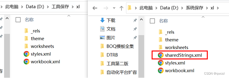 6、xl目录下,python生成文件缺少了shareStrings.xml,该文件存放了列名信息
