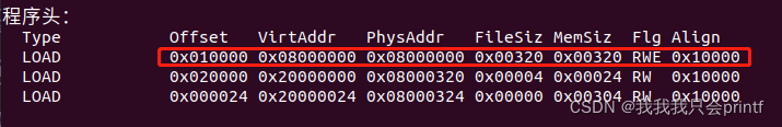 使用readelf -l 查看程序头表可以看到: