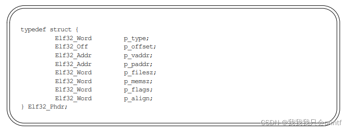以上是一个program header的标准结构,程序头表就是包含一个或多个program header的列表。