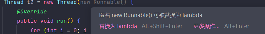 既然 Runnable 只有一个方法(run()),那就可以用 Lambda 简化: