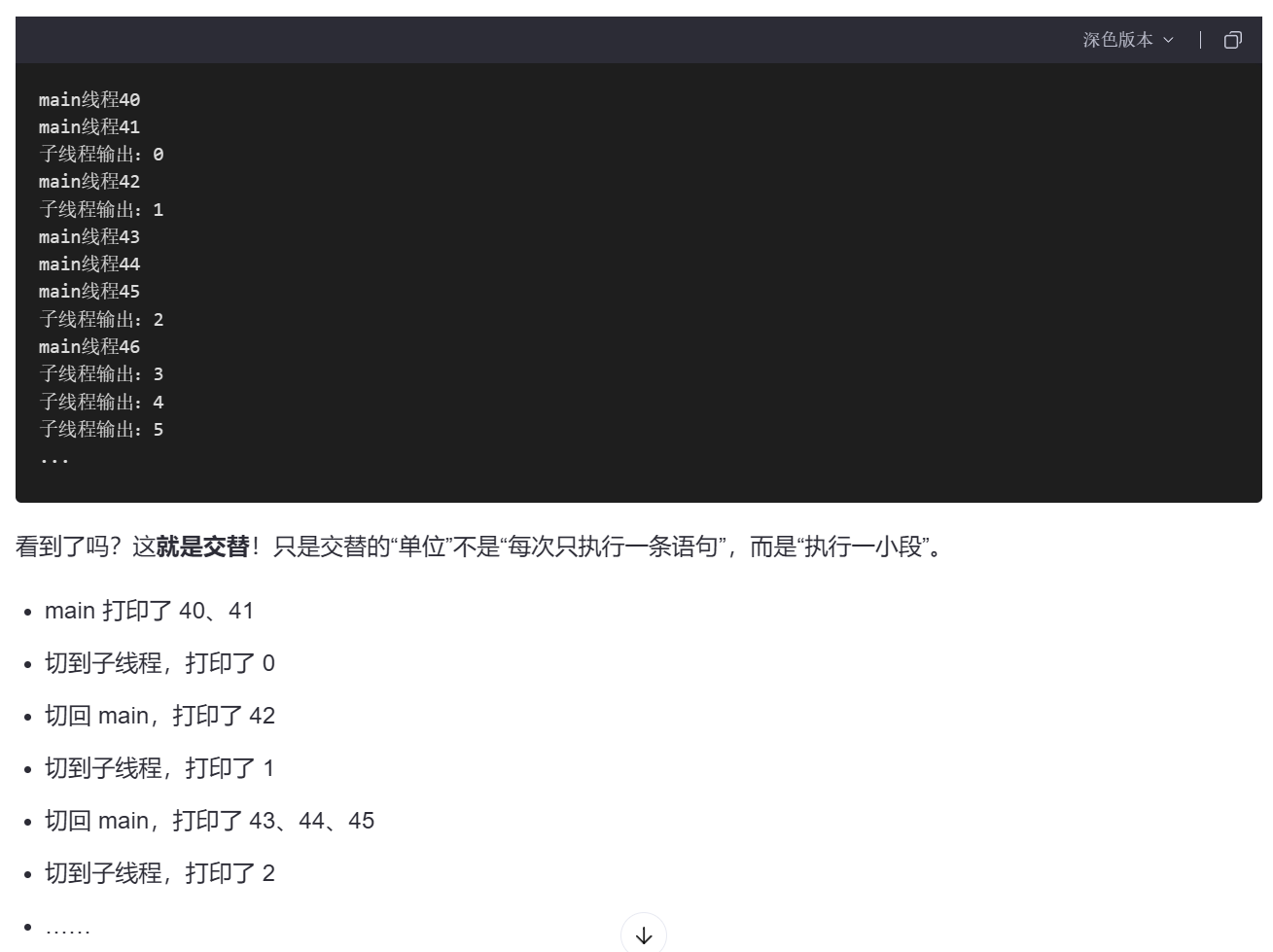 - 线程切换:只是同一个王国里的“员工”换班,共享的地盘不用变,只换个人信息,轻得多,快得多。