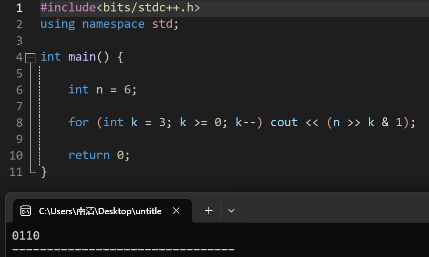k位移到最后一位:使用右移操作>>把第k位移动到最右边(也就是个位)。 - 查看个位是几:使用按位与操作