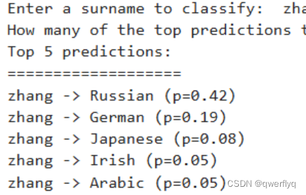 预测应用:使用训练好的 MLP 模型对新的姓氏数据进行预测,即根据模型学习到的规律,将新的姓氏分类为对应的国家。