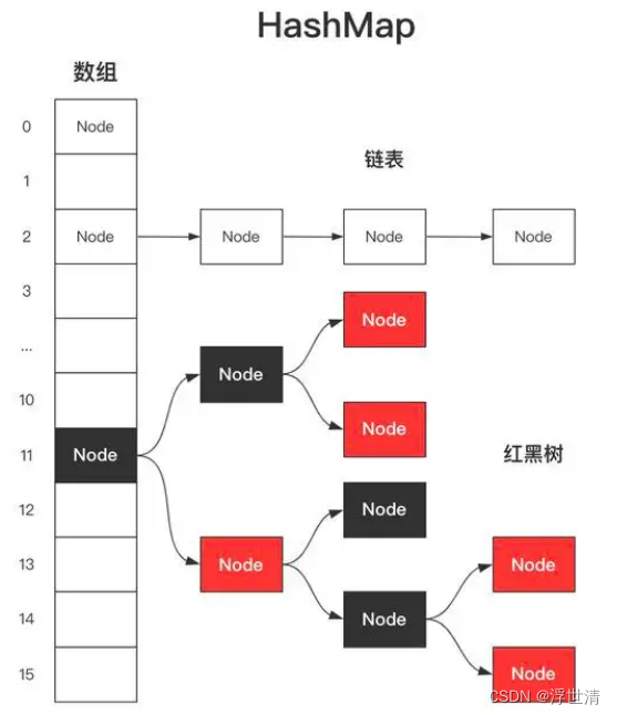 - JDK1.8之后,HashMap采用"数组+链表+红黑树"实现