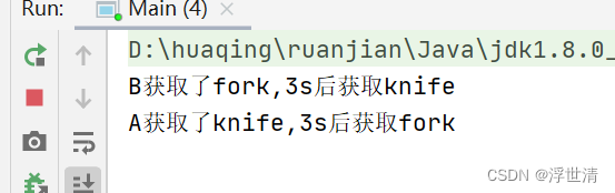 System.out.println(Thread.currentThread().getName() + "获取了fork,3s后获取knife");