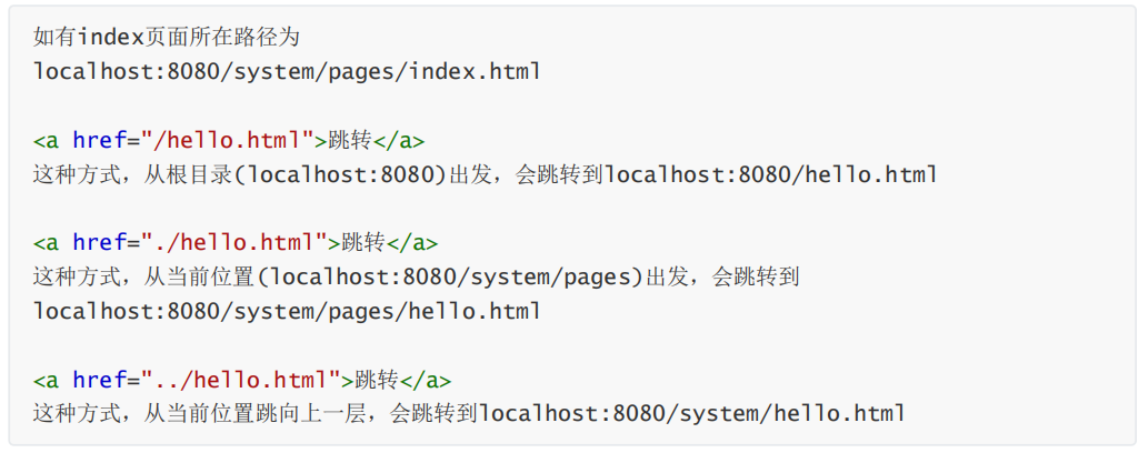<a href="http://localhost:8080/system/pages/hello.html">跳转</a>相对路径问题