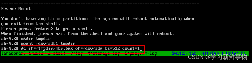dd if=备份文件 of=/dev/sda bs=512 count=1
