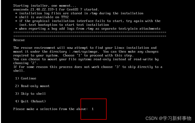 1(continue) 检查分区并挂载到某个目录下,按1继续执行操作