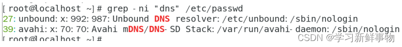 列出/etc/passwd文件中包含“dns”的行,并显示行号