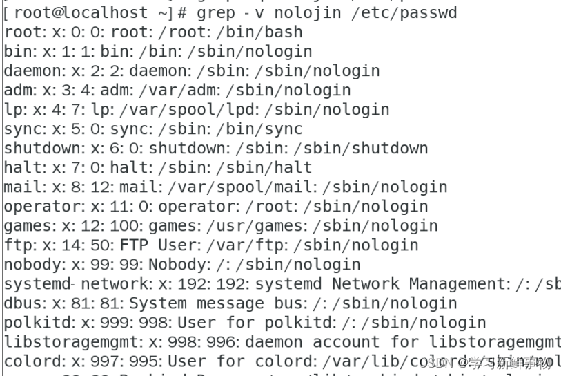 筛选出/etc/passwd文件中不包含“nologin”的行