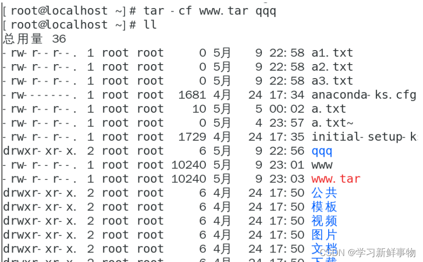 创建a1-a3.txt3个文件,使用tar命令将这3个文件进行打包压缩