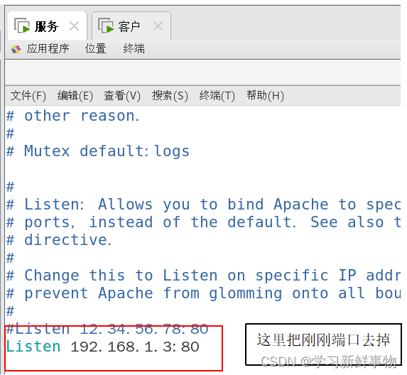 进入vim /usr/local/apache/conf/httpd.conf 这是一个网络命令,意思是让计算机监听IP地址为192.168.1.3,端口号为80的网络连接。这通常用于测试网络连接或者搭建服务器等操作