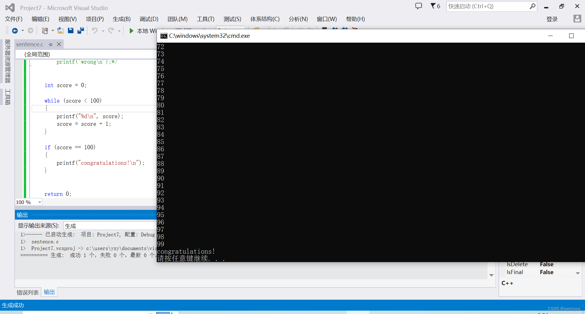 在过程中,需要使用{}来规定循环的范围,否则会出现一直打印0的情况,因为程序并没有检测到while的执行,而只是根据printf在打印score的初始值。
