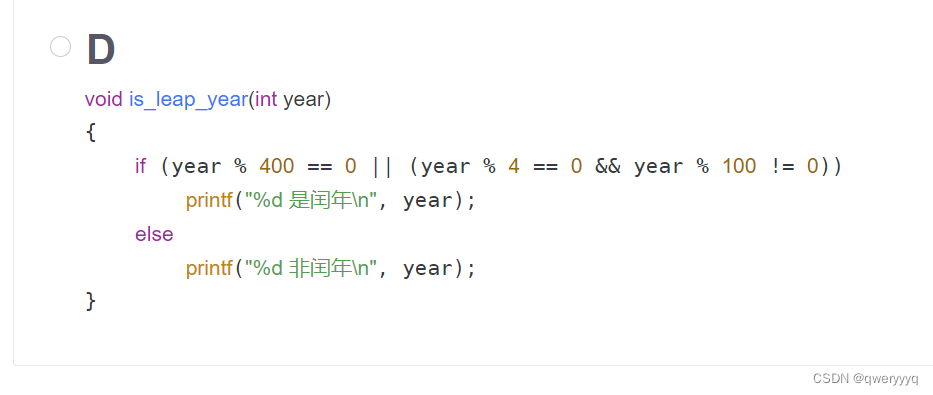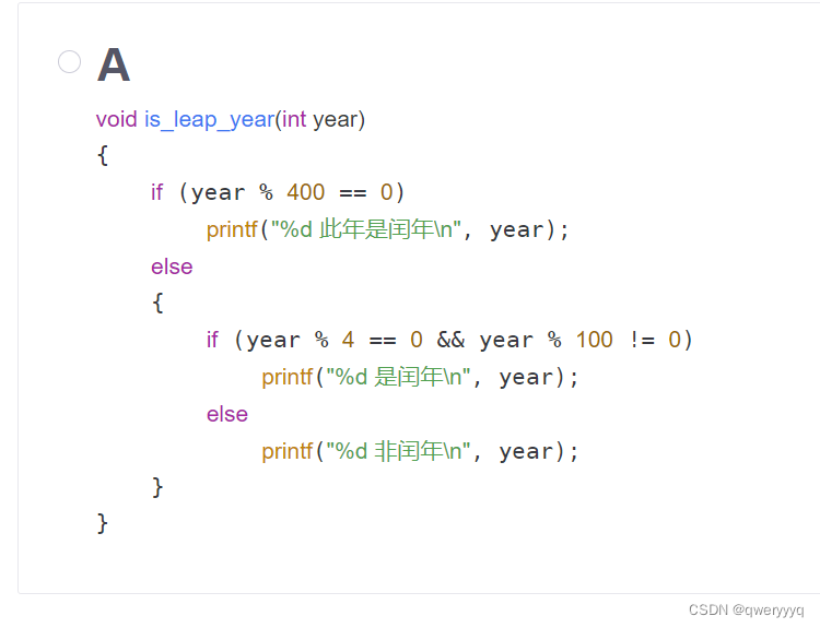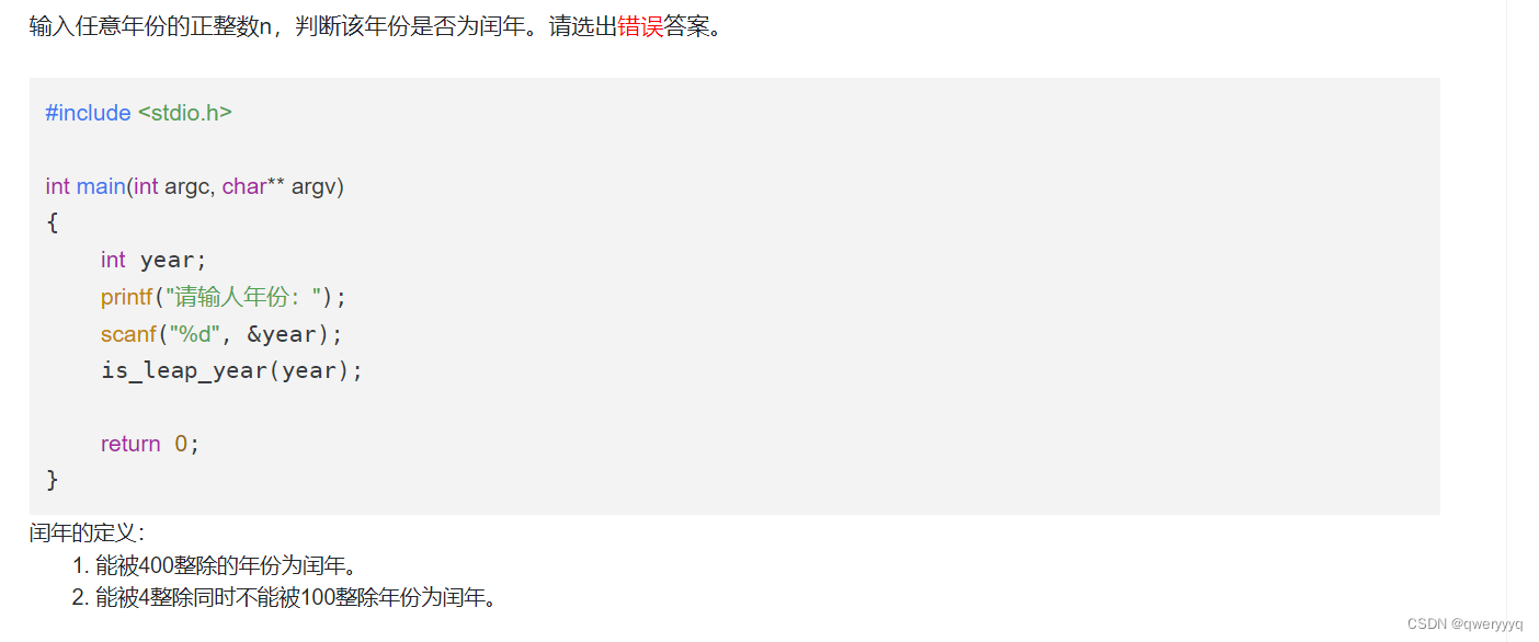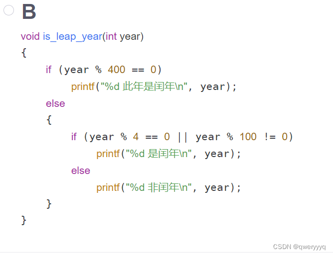 B程序这里与A不同,||只需要其中一者满足条件就判断成功,这里如果只满足后者,不一定前者也满足,此时不是闰年但任然判断成闰年,错误。