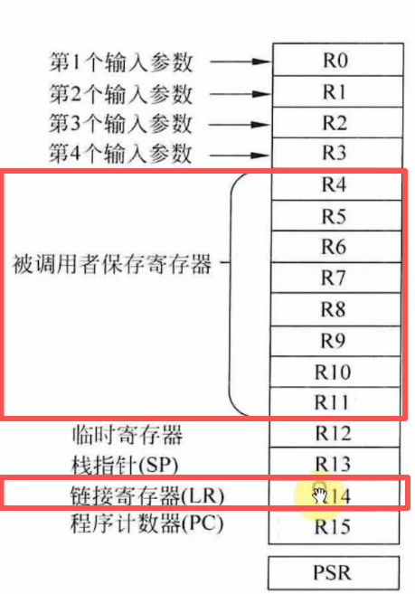 9:8个被调用者保存寄存器(R4-R11)+LR寄存器