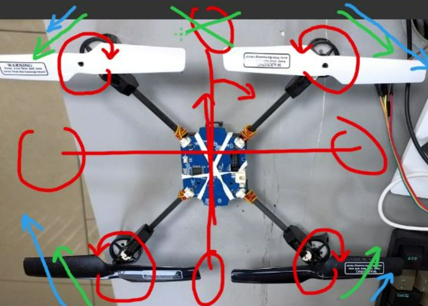 对角对称性:四个旋翼必须两两反向旋转