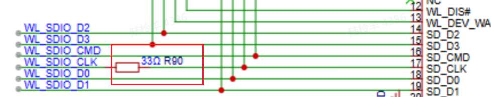 SDIO CLK 线上通常串联一个 33Ω (R90) 电阻。