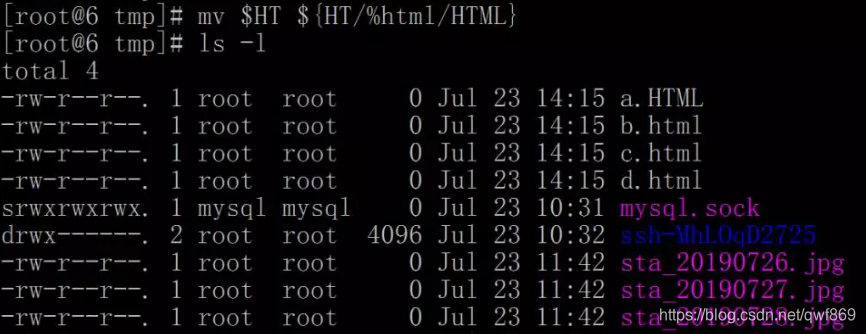 [root@6 tmp]# mv $HT ${HT/%html/HTML}