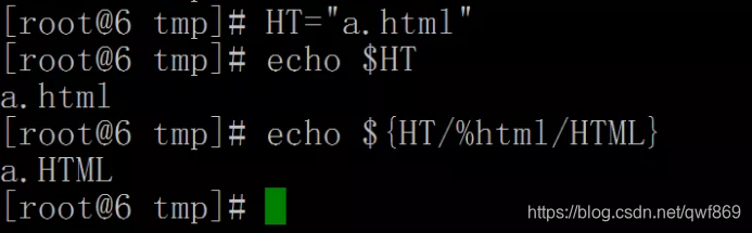 [root@6 tmp]# echo ${HT/%html/HTML}