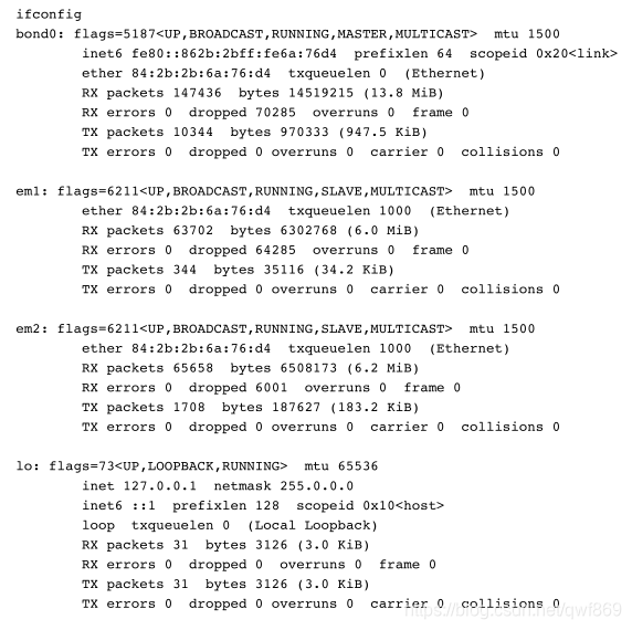 服务器上两张物理网卡em1和em2, 通过绑定成一个逻辑网卡bond0,