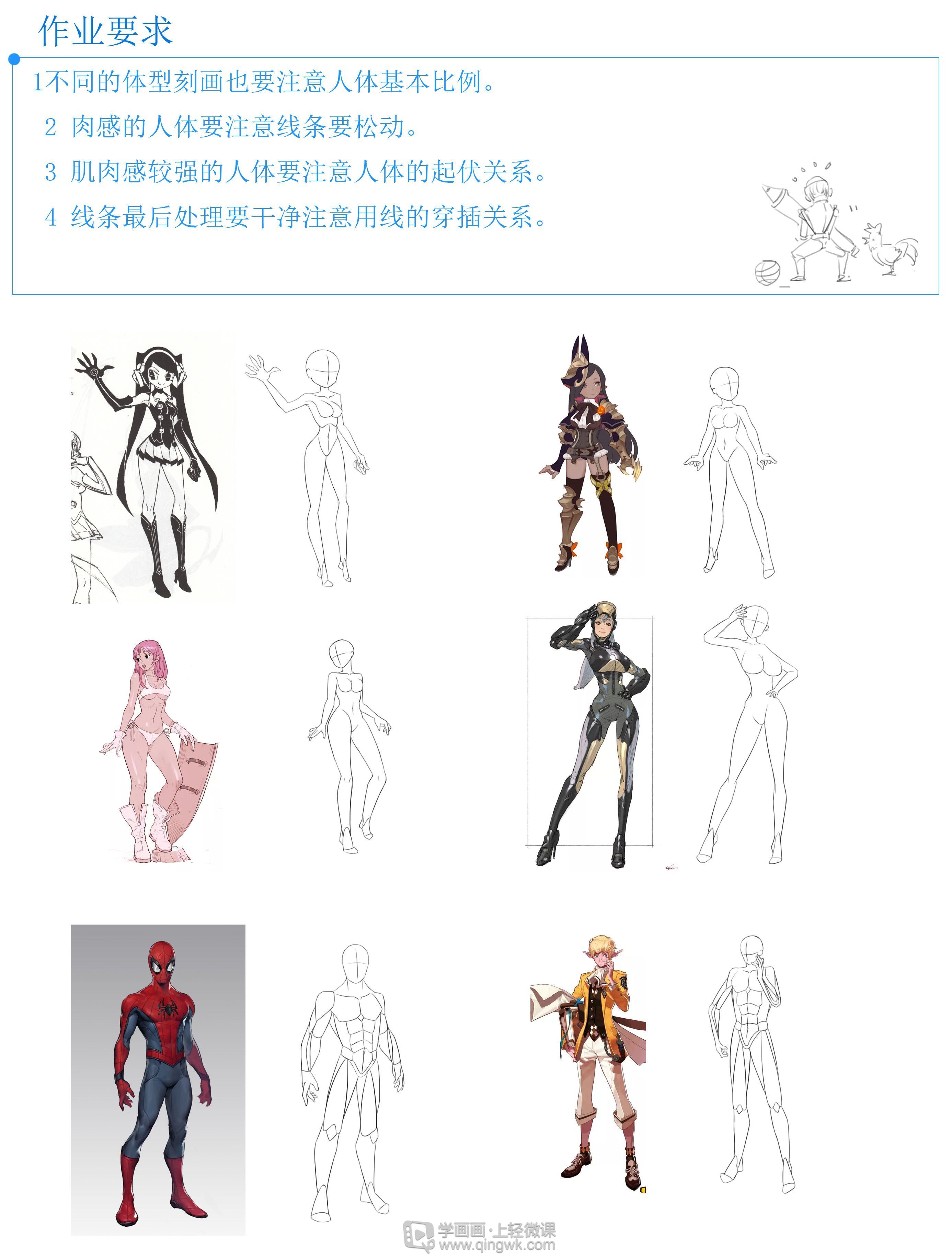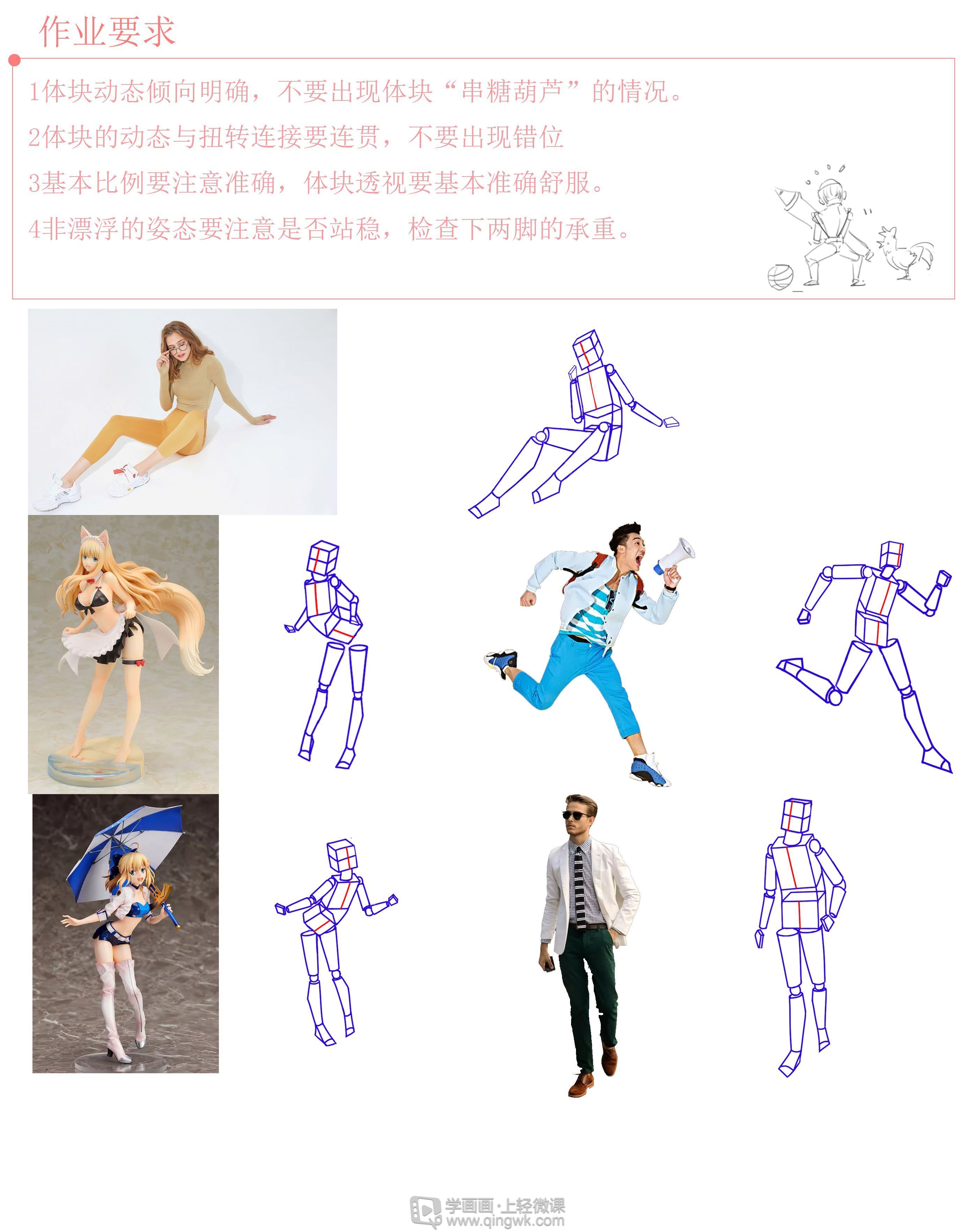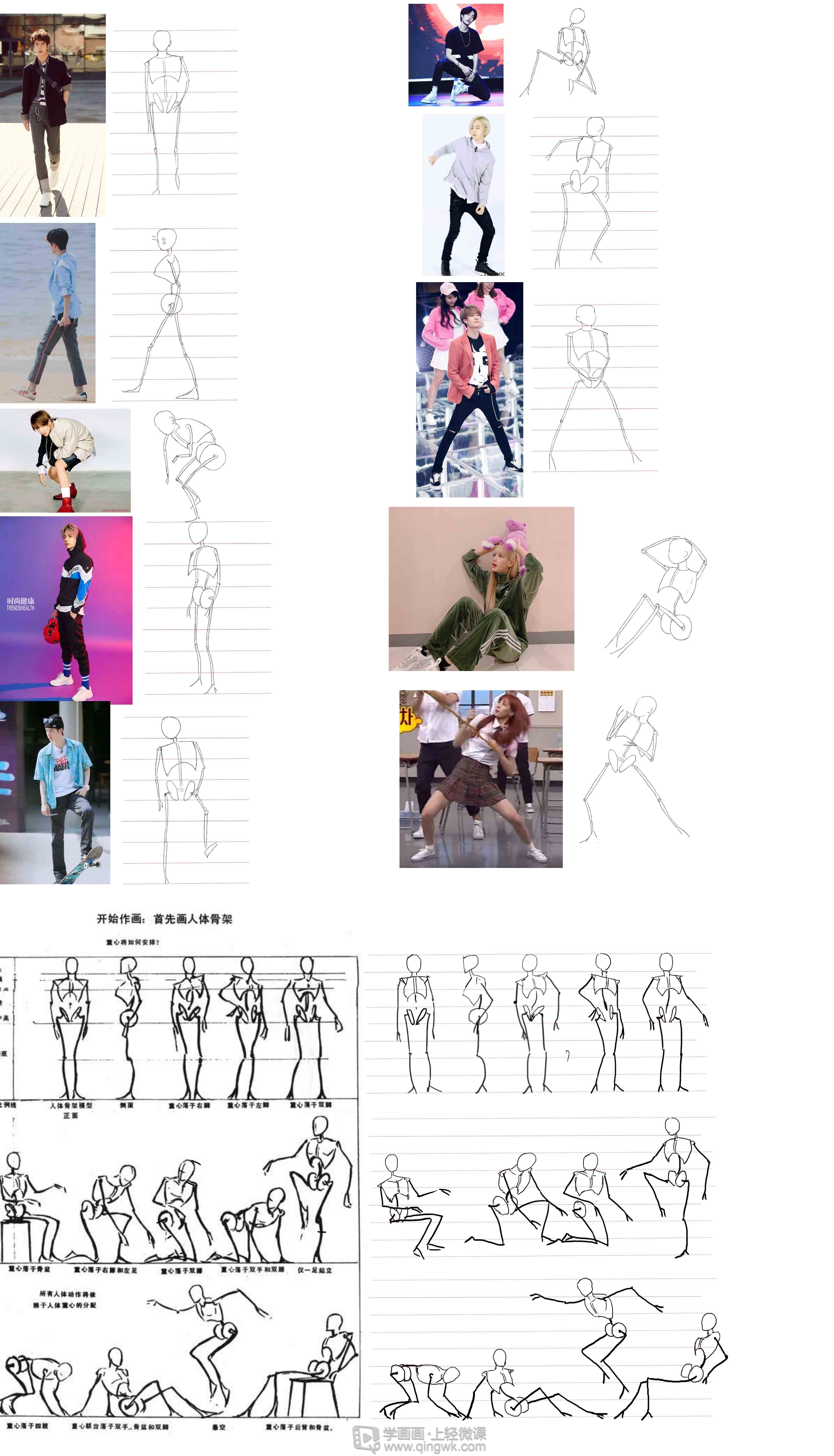 微课君不得不说,这参考图画的是真的好,不但完成度高,还带各种动态的姿势的。但是新手一上来就练这些完成度这么高真的有用吗?人体比例你了解了吗?一二三点透视你掌握了吗?人体骨骼你有练过吗?人体四肢等局部练习你有练过吗......
