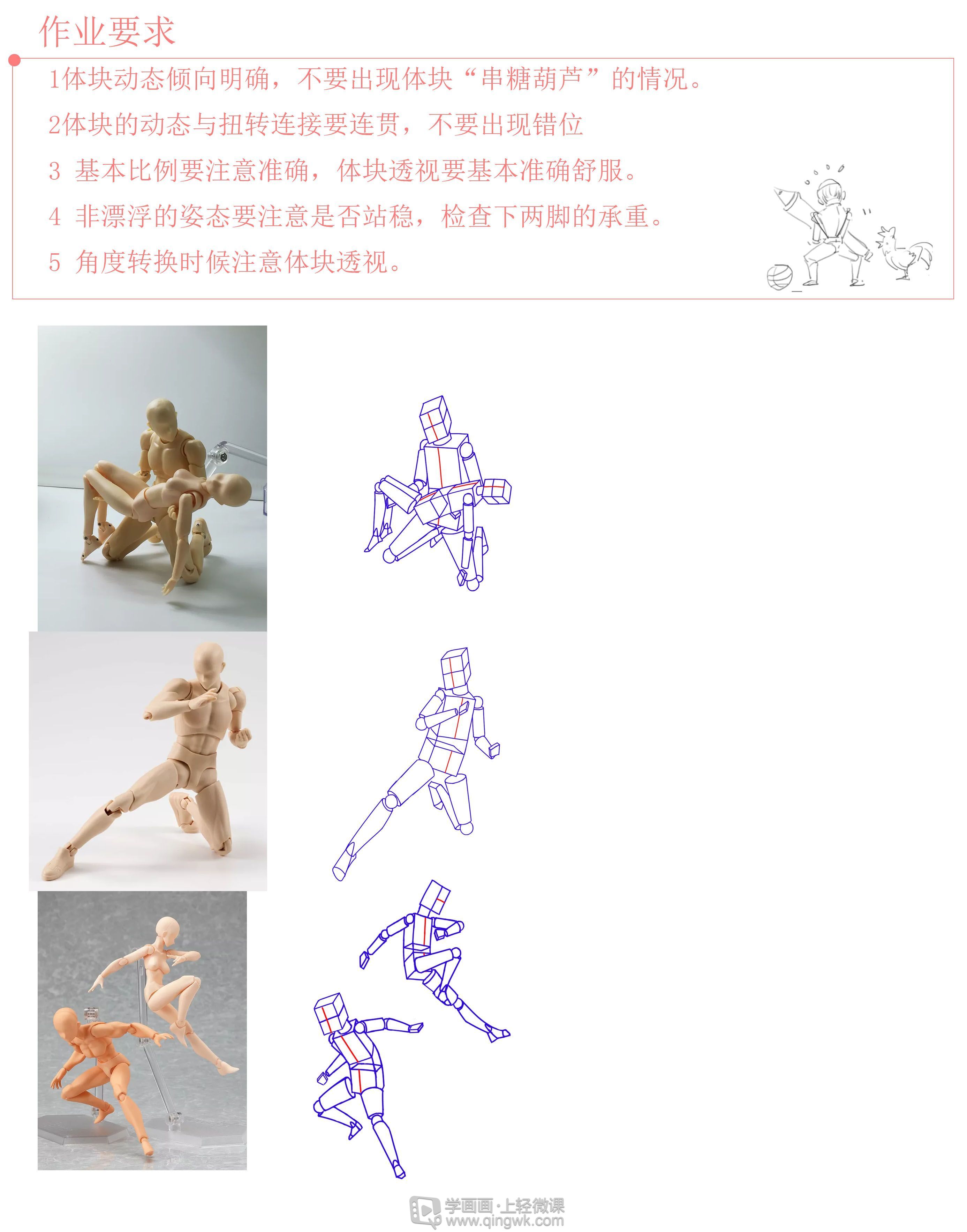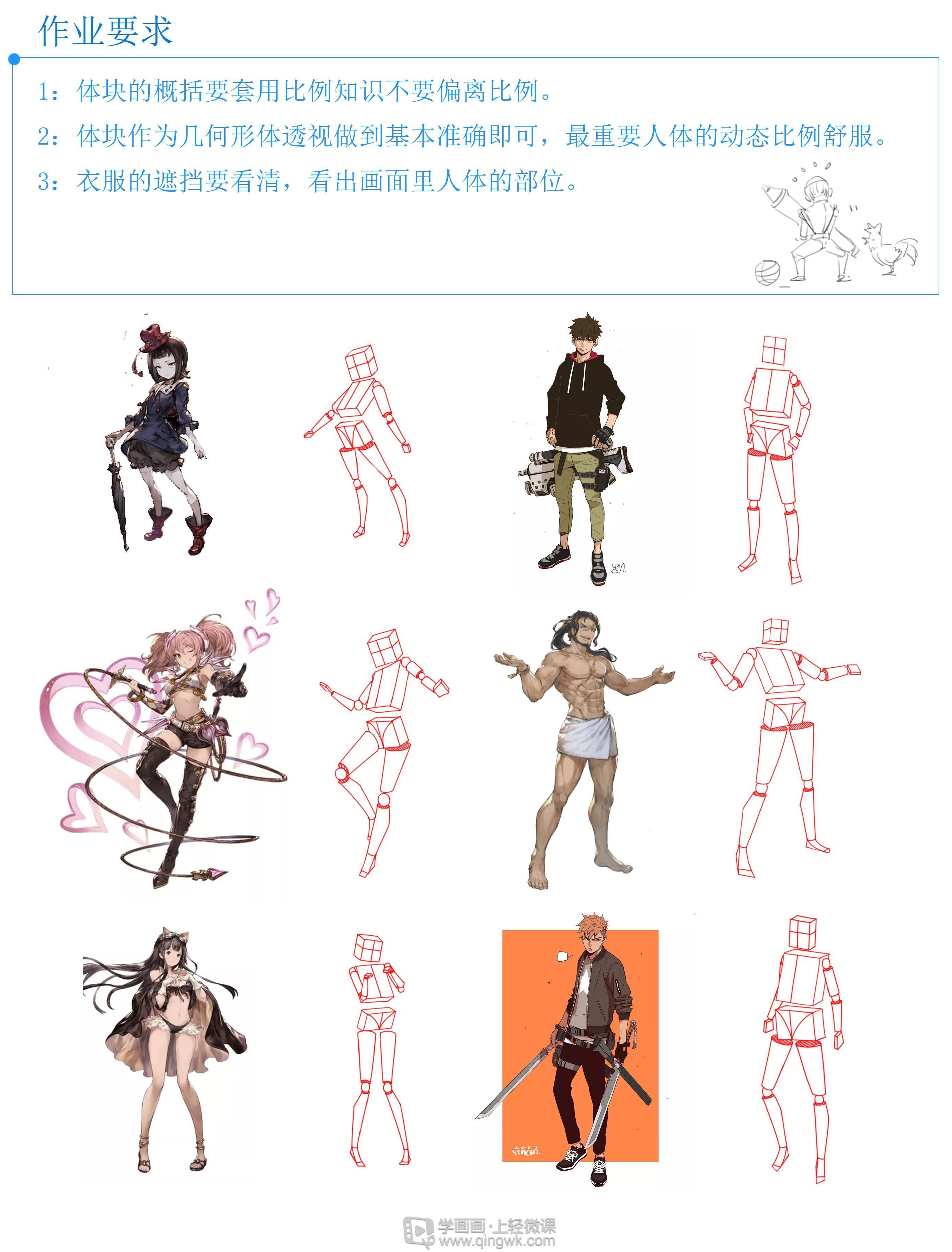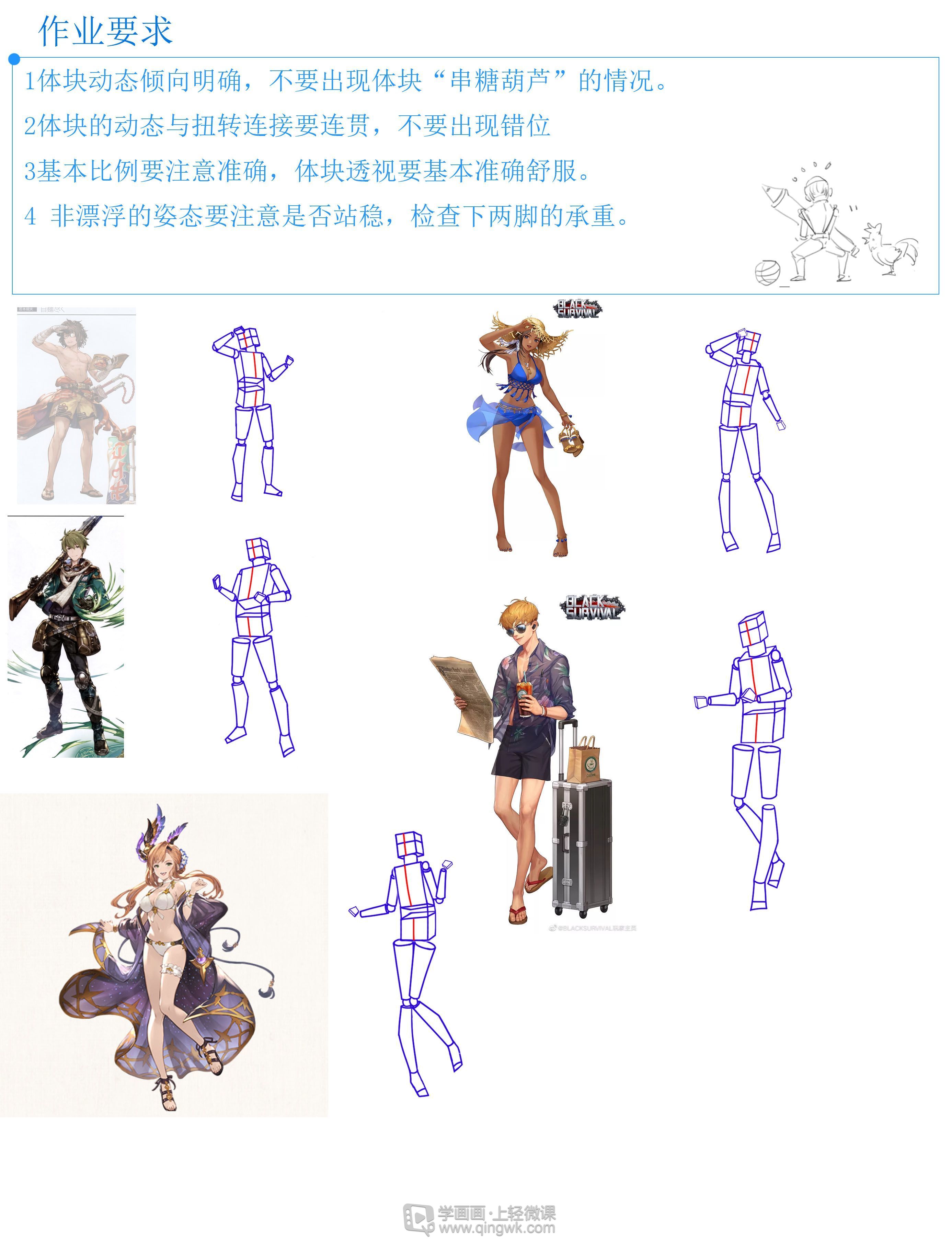 微课君不得不说,这参考图画的是真的好,不但完成度高,还带各种动态的姿势的。但是新手一上来就练这些完成度这么高真的有用吗?人体比例你了解了吗?一二三点透视你掌握了吗?人体骨骼你有练过吗?人体四肢等局部练习你有练过吗......