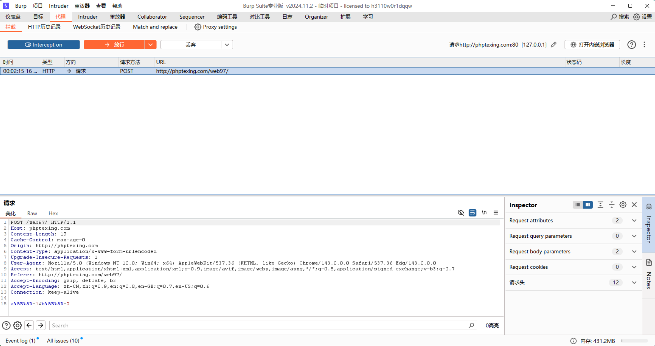 POST /target.php HTTP/1.1 Host: example.com Content-Type: application/x-www-form-urlencoded Content-Length: 15 v1=1&v2=var_dump