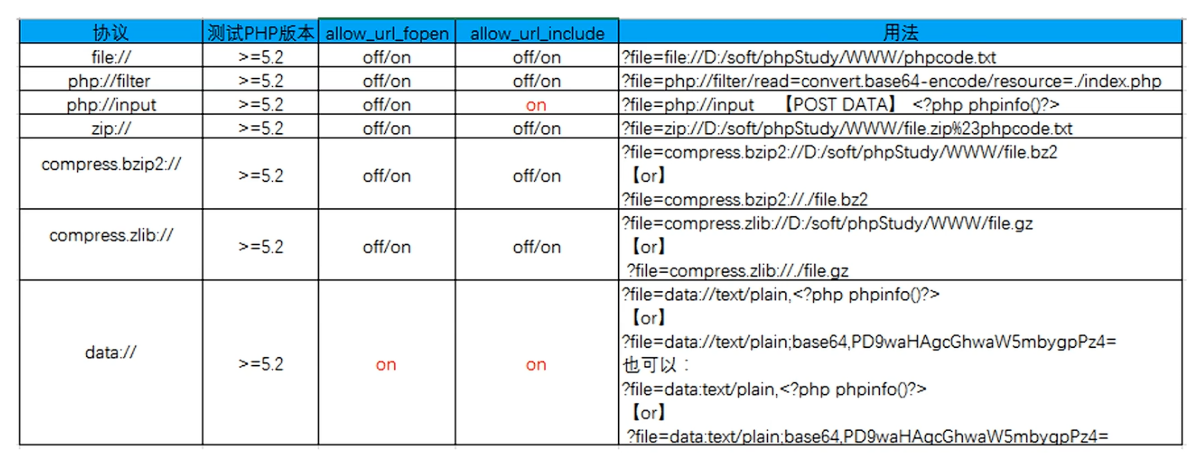 每个协议有使用条件,就是allow_url fopen allow_url include这两个选项,这两个条件被满足的时候才可以被利用