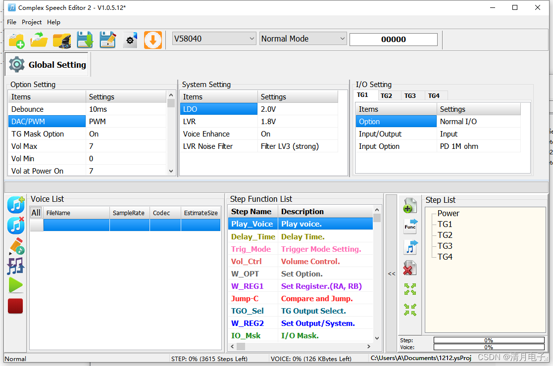 1、比如修改某一个IO是高电平触发,还是低电平触发,然后设置音量,然后导入语音文件