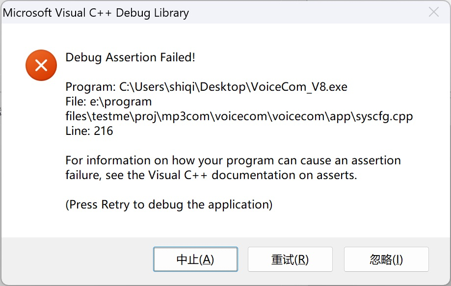 不能单独只拷贝“VoiceCom_V8.exe”到桌面运行