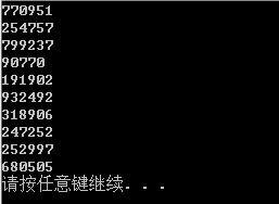 这个方法的主要思路是根据生成随机数的范围,确定随机数的最大位数,比如我这里生成的是[0,1000000)内的整数,这里的整数就是0-999999,随机整数最大位数为6位。这里我们将每一个位数看做是一个随机数,事实上每一位就是一个随机数,说到这里大家可能就懂了,就是分别产生每一位对应的随机数,然后通过流拼接到一起,构成我们需要的随机数。下面附上代码(以生成[0,1000000)之间的随机数为例):
