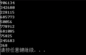 这个方法和第二种方法的思路是类似的,只是第二种方法是通过流将生成的每个数拼接成一个完成的随机数,而这个方法是通过对生成的每个数乘10、100、…、100000来得到最终随机数上每一位上的值,然后想加后即可得到我们需要的随机数。个人觉得这个方法更好,看代码量就能看出来,而且第二种方法使用stringstream时,它不会自动释放内存,需要使用ss.str("")来主动释放内存,所以一不小心就会造成内存错误。