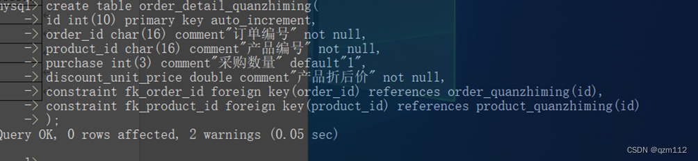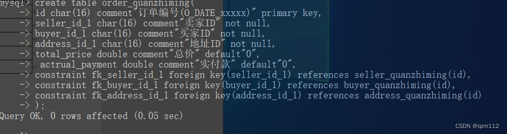 - 创建订单表“order_姓名全拼”,表中字段信息如下: