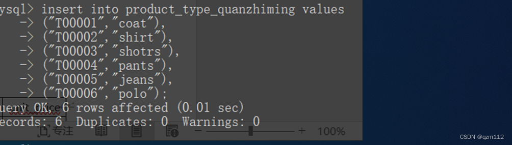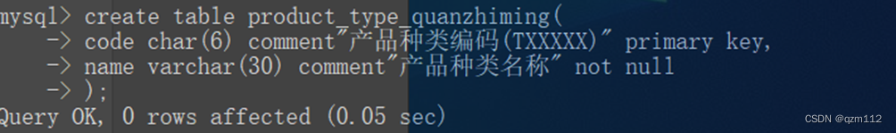 - 创建产品种类表“product_type_姓名全拼”,表中字段信息如下: