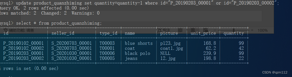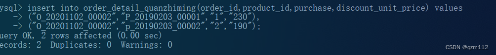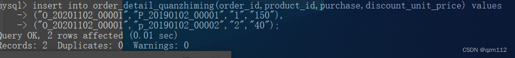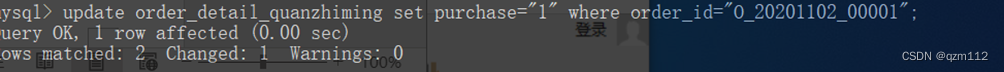- 修改订单详情表中O_20201102_00001订单P_20190102_00002产品的采购数量为1