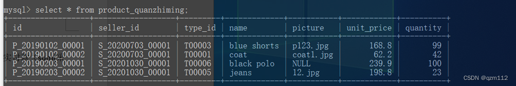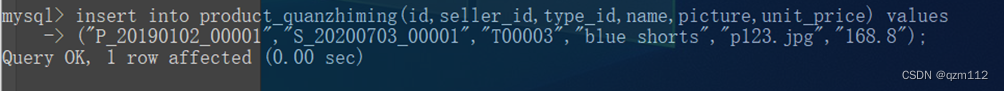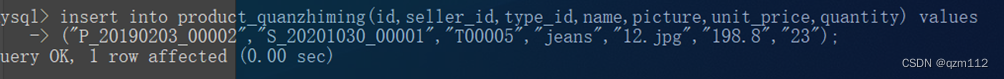 - 创建产品表“product_姓名全拼”,表中字段信息如下:
