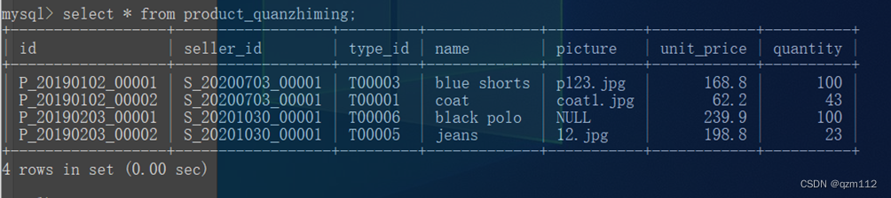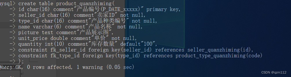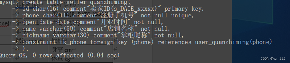 - 创建卖家信息表“seller_姓名全拼”,表中字段信息如下: