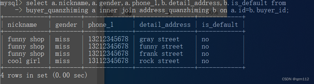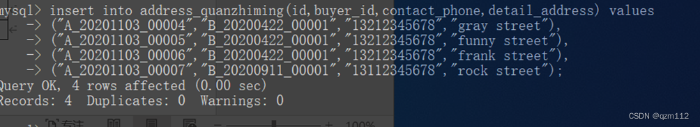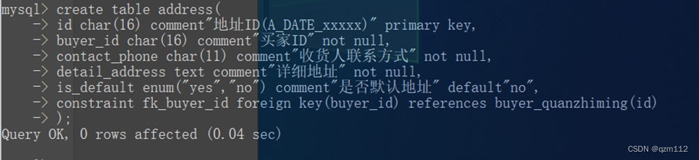 - 创建地址表“address_姓名全拼”,表中字段信息如下: