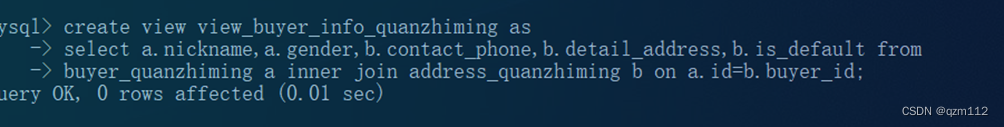 - 创建买家信息视图“view_buyer_info_姓名全拼”查看上述内容